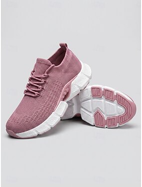 Roze gebreide instapsneakers voor dames, lichtgewicht, gedempte hardloopschoenen, comfortabele en ademende schoenen voor dagelijks gebruik, wandelen, de sportschool en reizen. &informele uitjes