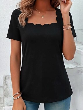 Dames Blouse Met ruches Geborduurd Afdrukken Bloemig Grafisch Paisley Dagelijks Stijlvol Basic Halve mouw Vierkante hals Normale tops Dagelijks blauw Zwart Blozend Roze Licht Paars Groen Zomer Lente
