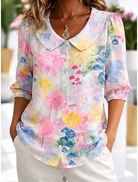 Dames Overhemd Vintage Stijlvol 3/4 mouw Peter Pan kraag Normale tops Dagelijks Werk Feestdagen blauw Blozend Roze Paars Groen Zomer Lente