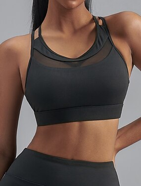 Dames Gemiddelde ondersteuning Gevoerde tanktop Running BH Slank Goede top Gewatteerd Sportschool Oefening Hardlopen Lichtgewicht Elastisch Ademend Zwart Wit Geel Effen