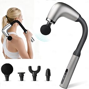 Diepweefselmassagepistool voor de rug &Volledige lichaamsmassager - verbeterde percussie-spiermassager met lange steel, 4 verwisselbare opzetstukken, instelbare snelheden en stille motor.