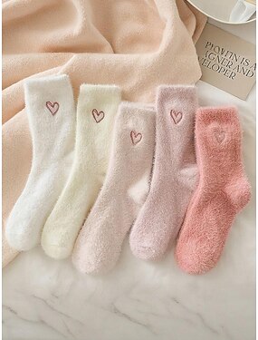 Set van 5 katoenen damessokken, zacht en comfortabel met hartjesmotief, perfect voor dagelijks gebruik en als cadeau.