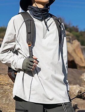 Voor heren Wandelshirt Wandeltop Kwart rits shirt Lange mouw Opstaand Kleding Bovenlichaam Buiten UV-zonbescherming Sneldrogend Ademend Lente Herfst Nylon Donker Grijs Zwart Licht Grijs Tennis Golf
