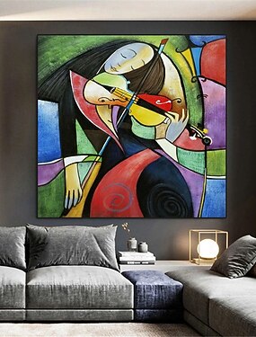 het portret van de vioolspeler olieverfschilderij op canvas - handgemaakte kubistische muzikant beeldende kunst