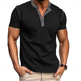 Voor heren Henley-shirt Overhemd van 100% katoen met zure wassing Korte mouw Henley Lente zomer Zomer Lente Kleurenblok Lapwerk Retro vintage Casual Henley Lapwerk Vintagestijl Kleurenblok Casual