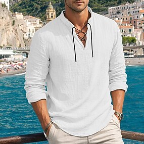 Voor heren Overhemd Linnen overhemd Zomer overhemd Strand hemd Overhemd met knopen Overhemden zonder broek Effen Casual Dagelijks Zwart Wit Lichtgroen Blozend Roze Lange mouw Strijkijzer Zomer Lente
