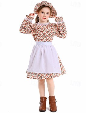 250e jubileum VS 19e eeuw jaren 1800 Prairiejurk Bonnet en schortset Lange Mouwen Pionier Meisje Koloniaal Pionier Onafhankelijkheidsoorlog Bloemig Kostuum Voor meisjes Halloween Carnaval 4 juli