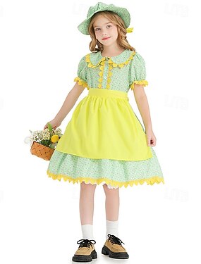 250e jubileum VS 19e eeuw jaren 1800 Prairiejurk Bonnet en schortset Korte mouwen Pionier Meisje Koloniaal Pionier Onafhankelijkheidsoorlog Bloemig Kostuum Voor meisjes Halloween Carnaval 4 juli