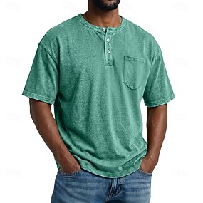 Voor heren Henley-shirt Overhemd van 100% katoen met zure wassing Korte mouw Effen Retro vintage Casual Vintagestijl Kledingstuk geverfd Bleek Henley Casual Zomer Lente Herfst Zwart Roze Lichtgroen