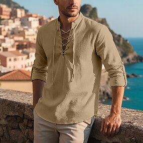 Voor heren Linnen overhemd Zomer overhemd Strand Kleding Overhemd met knopen Effen Vakantie Curise Zwart Wit Lichtgroen Blozend Roze Korte mouw Strijkijzer Zomer Kleding