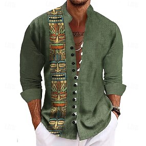 Voor heren Geometrisch Verloop Golven Overhemd Overhemd met staande kraag Lange mouw Mode-casual Dagelijks gebruik Feestdagen Lente Herfst Mandarijn Kraag Band Kraag 3D-afdrukken Overhemden met