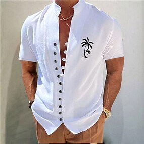 Voor heren Overhemd Linnen overhemd Zomer overhemd Strand Kleding Overhemd met knopen Effen Casual Dagelijks blauw Zwart Wit Blozend Roze Lange mouw Kraag Lente zomer Kleding