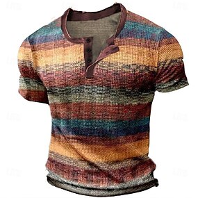 Voor heren Wafel Henley-shirt T-shirts Grafisch Kleurenblok Henley Kleding 3D-afdrukken Buiten Casual Korte mouw nappi Modieus Ontwerper Stijlvol Vintage