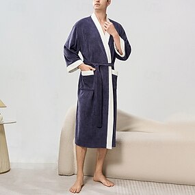 Voor heren Pyjama Nachtkleding Badjas Effen Modieus Stijlvol Klassiek Huis Dagelijks Bed Flanel Polyester Thermisch Warm Comfort Zacht V-hals Lange mouw Herfst Winter Zwart Marineblauw