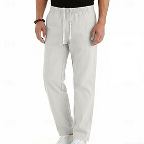 Voor heren Linnen broek Broek Zomerbroek Wijde broek Strandbroeken Trekkoord Elastische taille Recht been Effen Comfort Ademend Volledige lengte Buiten Feestdagen Strand Vakantie Modieus White