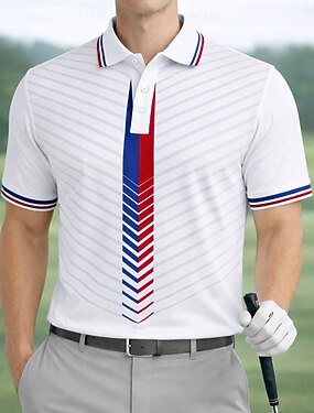 Voor heren Meetkundig Golf Sport Poloshirts Korte mouw Poloshirt Overhemden met kraag Casual Sportkleding Knop Ademend gaas Zomer Lente blauw Rood Marineblauw
