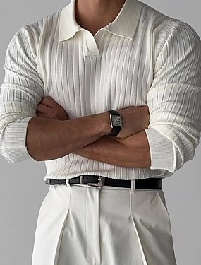 Voor heren Golfshirt Golf Polo's Shirts Werk Casual Revers Lange mouw Basic Modern Effen Kleur Standaard Lente & Herfst Normale pasvorm Zwart Wit Bruin Golfshirt