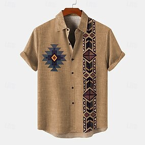 Voor heren Geometrisch Lijn Abstracte kunst Overhemd Overhemd met knopen Korte mouw Zakelijk informeel Dagelijks Buiten Vakantie Zomer Lente Strijkijzer 3D-afdrukken Linnenachtig shirt blauw Zwart