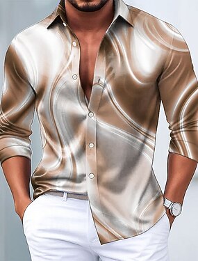 Voor heren Geometrisch Overgangskleur Abstracte kunst Overhemd Satijnen overhemd Lange mouw Mode-casual Vakantie Dagelijks gebruik Zomer Lente Herfst Strijkijzer 3D-afdrukken Overhemden met knoopjes