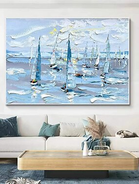 Groot handgemaakt abstract olieverfschilderij van een zeilboot, olieverfschilderij op canvas, origineel nautisch zeilboot muurdecoratie, handgeschilderd scheepsschilderij, modern zeegezicht,