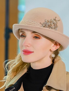 hoeden wollen bolhoed / cloche hoed fedora hoed bruiloft theekransje elegante bruiloft met pet kant zijkant hoofddeksel hoofddeksel