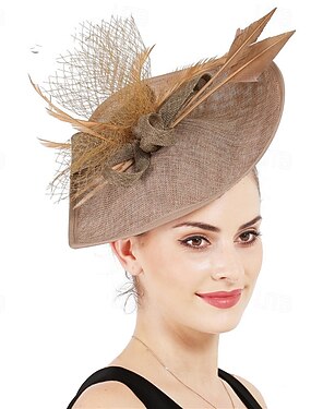 fascinators Stro Bruiloft Verjaardag Vintage leuke Style Retro Met Veer Helm Hoofddeksels