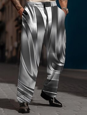 Voor heren Grafisch Pakken Medium Taille Zakelijk informeel Formeel Dagelijks gebruik Zak Broek met rechte pijpen Zomer Lente Herfst 3D-afdrukken Grijs