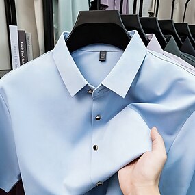Voor heren Overhemd Strijkvrij overhemd Effen Kleur Buiten Werk Licht Roze Zwart Wit Champagne Korte mouw Strijkijzer Zomer Lente Kleding Knop