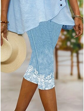 Dames Capri broeken Leggings Vakantie Hawaii Stijlvol Capris Middelhoge taille Bloemig Grafisch Afdrukken Comfort Rekbaar Buiten Vakantie Formeel blauw Wit Groen Zomer Lente Herfst Strak