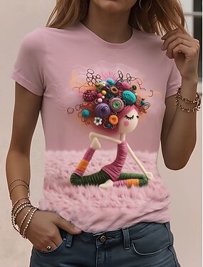 Dames T-shirt Bloem Motief Ronde Hals Korte Mouwen 3D Vlinderprint Elegante Casual Wear Lente Zomer Comfort Fit Paars Multigrootte Mode Top