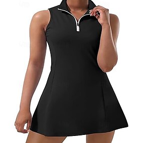 Dames Effen Tennisjurk met korte broek Sportkleding Mouwloos Kwart ritssluiting Sneldrogend Elastisch Zweetafvoerend Ademend Tennis Golf Badminton Polo kraag Hoge nek Jurken Paars Zwart Wit