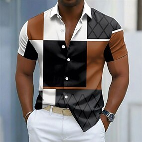 Voor heren Kleurenblok Lapwerk Overhemd Overhemd met knopen Casual overhemd Korte mouw Mode-casual Streetwear Vakantie Lente Herfst Strijkijzer 3D-afdrukken shirts met kraag blauw Wijn Bruin Groen