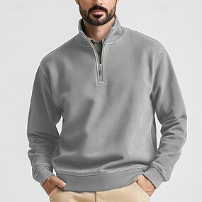 Voor heren Sweatshirt Polar fleece Sweatshirt met kwartrits Zwart Marineblauw Kameel Lichtgrijs Donkergrijs Halve rits Effen Sport & Outdoor Dagelijks Feestdagen Streetwear Basic Casual Herfst winter