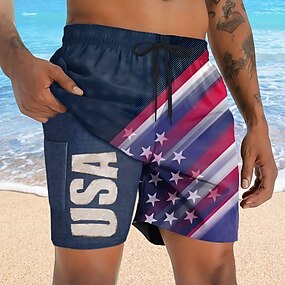Independence Day Voor heren 4 juli, 250e verjaardag van de VS Vaderlandslievend Amerikaanse Vlag Gevoerde shorts 2 in 1 zwemshorts Lange zwembroeken Medium Taille Feestdagen Zijzakken Met