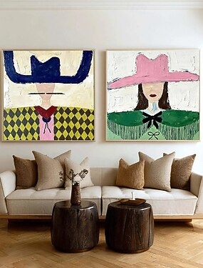 vrouw in gele hoed moderne abstracte sexy vrouw figuur canvas schilderij handgeschilderde kunst aan de muur voor woonkamer interieur geen frame