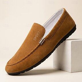 Bruine suède loafers voor heren, instappers, casual, lichtgewicht, comfortabele mocassins voor dagelijks gebruik, reizen, kantoor, weekendoutfits en een ontspannen, smart casual stijl.
