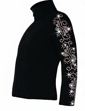 Fleecejack voor kunstschaatsen Dames Voor meisjes Schaatsen Jack Outfits Kleding Bovenlichaam Zwart Spandex Hoge Elasticiteit Opleiding Wedstrijd Kunstschaatskleding Met de hand gemaakt Kristal
