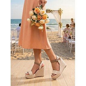 Beige sleehak sandalen voor dames - comfortabele schoenen voor bruidsmeisjes bij een strandbruiloft, een zomerse ceremonie in de buitenlucht, stijlvolle hakken voor bruiloftsgasten