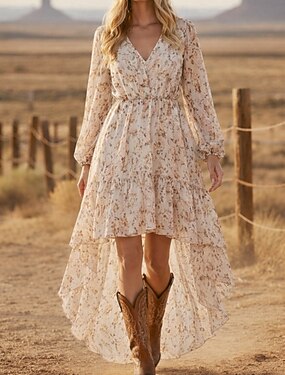 Dames Halflange jurk Boho-jurk Westerse kleding Modieus Modern Buiten Feestdagen Uitgaan Normale pasvorm Effen Lange mouw V-hals Kastanjebruin Zomer