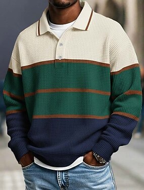Voor heren Kleurenblok Polo Lange mouw Poloshirt Revers Zakelijk informeel Sportkleding Alledaagse kleding 3D-afdrukken Knop Lente Herfst Winter blauw Bruin Groen