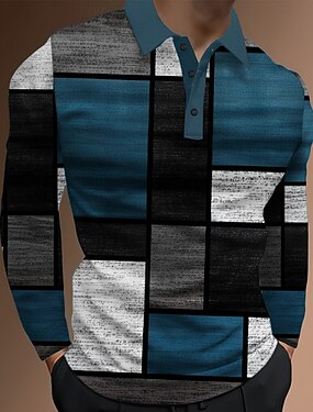 Voor heren Kleurenblok Abstract Polo Lange mouw Poloshirt Revers Casual Buiten Straat Sportkleding Alledaagse kleding 3D-afdrukken Knop Lente Herfst Winter blauw Paars Groen