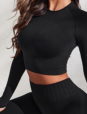 Dames Compressieshirt Basislaag Yogatops Strakke ronde hals Buikcontrole Lange mouw Sport Effen Kleur Kleding Bovenlichaam Voor Sportschoenen Sportief Pilates Sportkleding