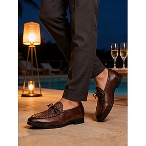 Bruine veterschoenen voor heren van imitatieleer, stijlvol en comfortabel, perfect voor een avondje uit in een resort.