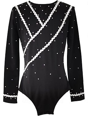 Kunstschaatstopje Voor heren Jongens Schaatsen Tops Zwart / Wit Lapwerk Spandex Hoge Elasticiteit Opleiding Wedstrijd Kunstschaatskleding Klassiek Kristal / Bergkristal Lange mouw Schaatsen