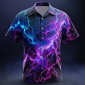 Voor heren 3D Print Bliksem Overhemd Overhemd met knopen Casual overhemd Lange mouw Mode-casual Streetwear Vakantie Lente Herfst Strijkijzer 3D-afdrukken shirts met kraag blauw Rood Paars Groen