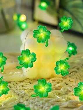 2 meter lange lichtslinger met 20 led's in de vorm van een klavertje vier, op batterijen werkende lichtslinger voor St. Patrick's Day, groene klaver voor feestjes, slaapkamer, muren, ramen, Pasen, St. Patrick's Day decoratie, warm licht