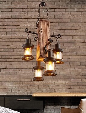 4-Light 45 cm Plafond Lichten & hangers Hout industrieel Landelijk 110-120V 220-240V