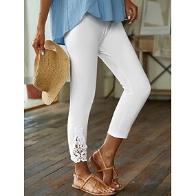 Dames Leggings Gezellige leggings Modieus Enkellengte Effen Kant Billenlift Comfort Buikcontrole Rekbaar Casual / Dagelijks Zwart Wit Grijs Mager