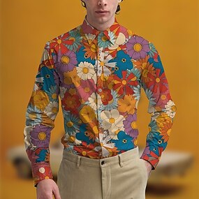 Retro vintage Jaren '70 Hemd Aloha-shirt Hippie Bloemig Kostuum Voor heren Maskerade Feest Alledaagse kleding Prideparade Volwassenen Hemd