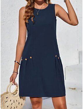 Dames Mini-jurk Hemdjurk Zomerjurk Casual Dagelijks Ruim Passend Effen Mouwloos Strakke ronde hals blauw Zomer